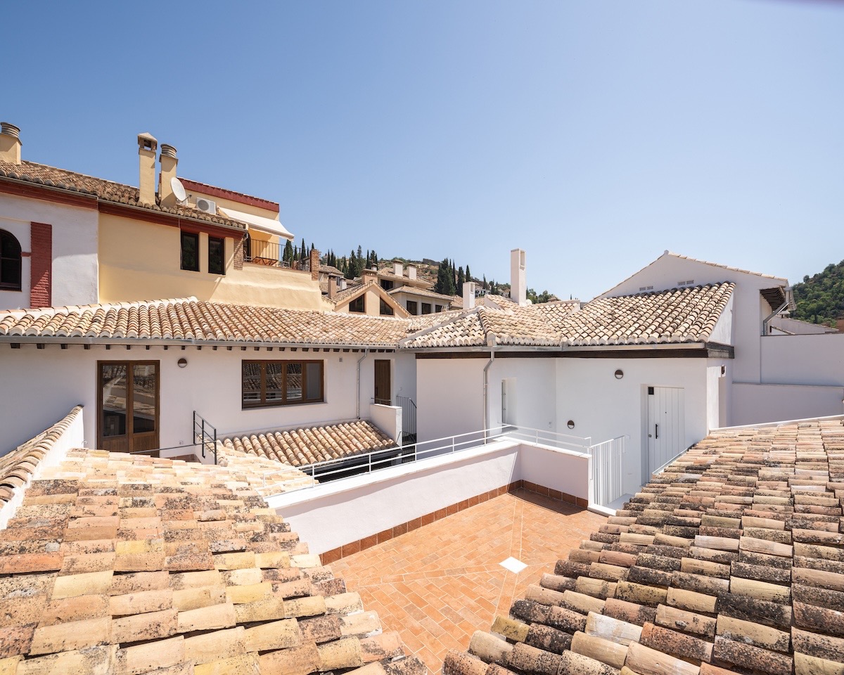 Abundant natural light fills the apartment throughout the day, and residents share a roof terrace with just three other homes, offering direct views of the Alhambra.