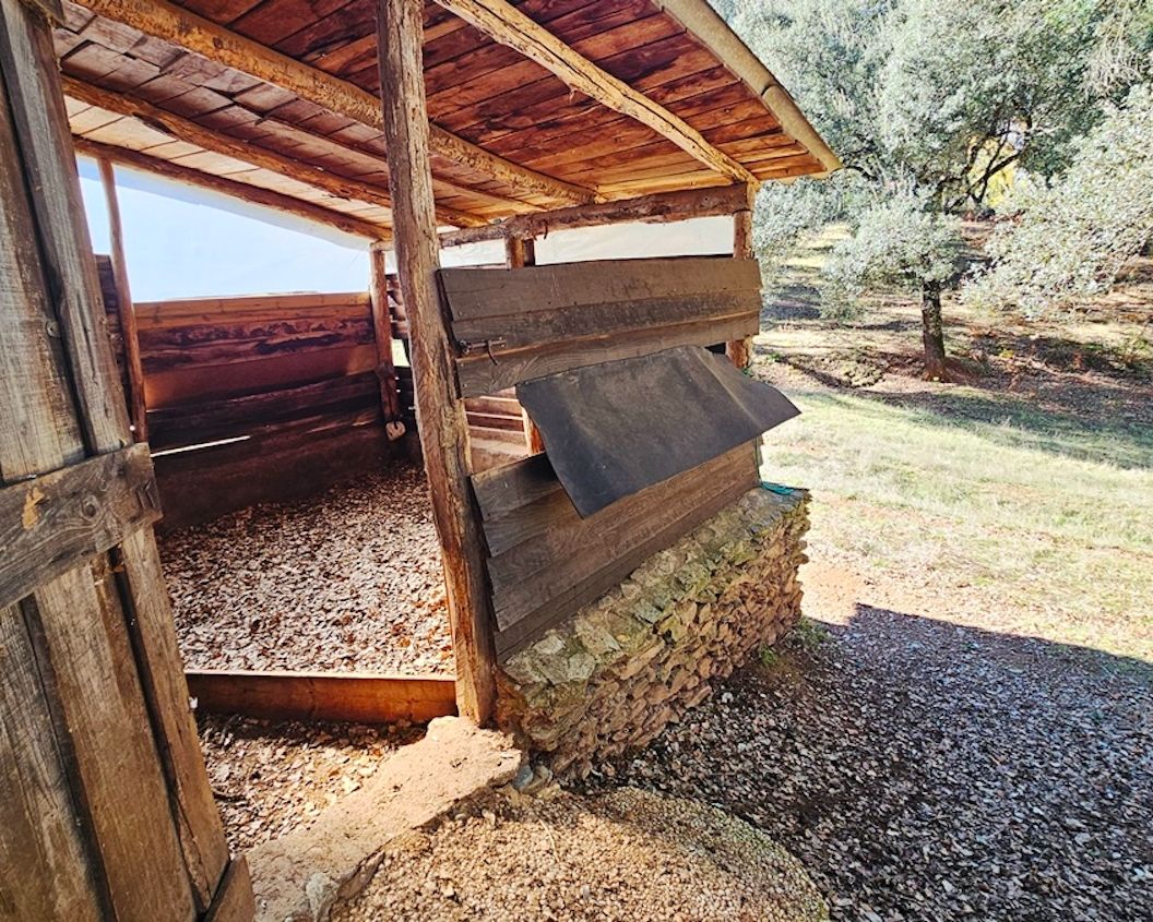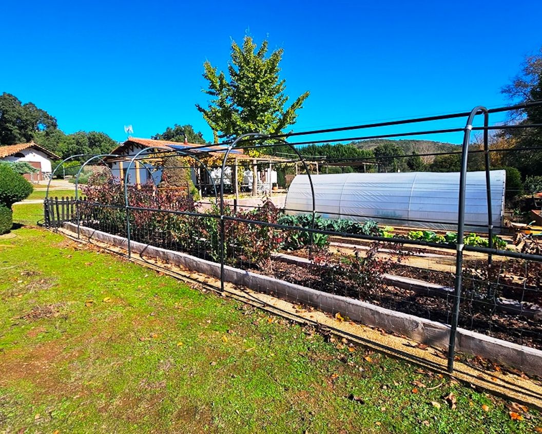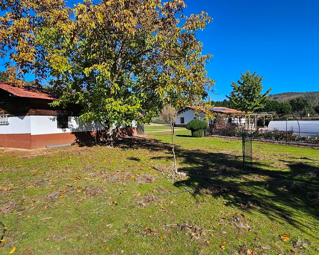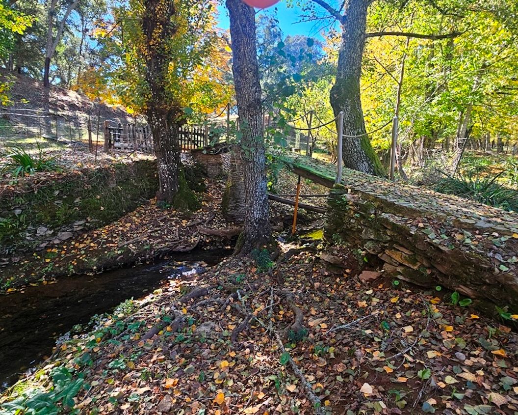 Set on approximately 17,000 m² of land, the property has been thoughtfully developed to encourage self-sufficiency and integration with its surroundings. A year-round stream flows in front of the house, crossed by a small bridge leading to the other side of the finca, adding both charm and practical access.
