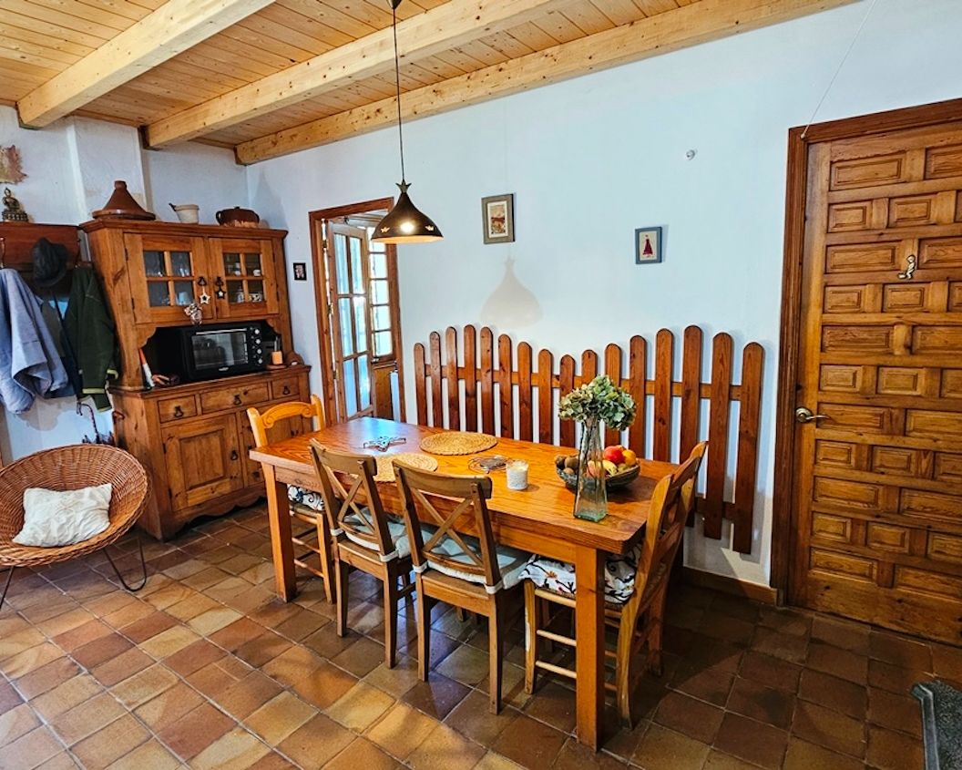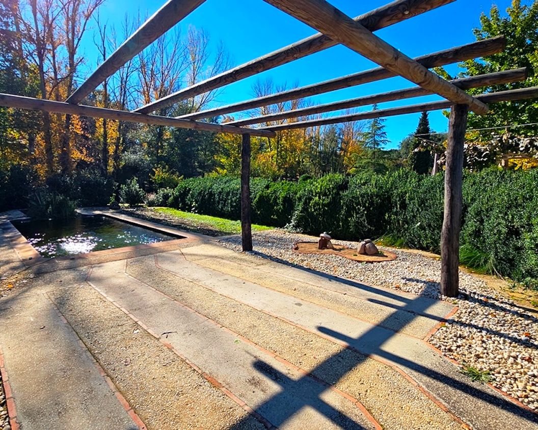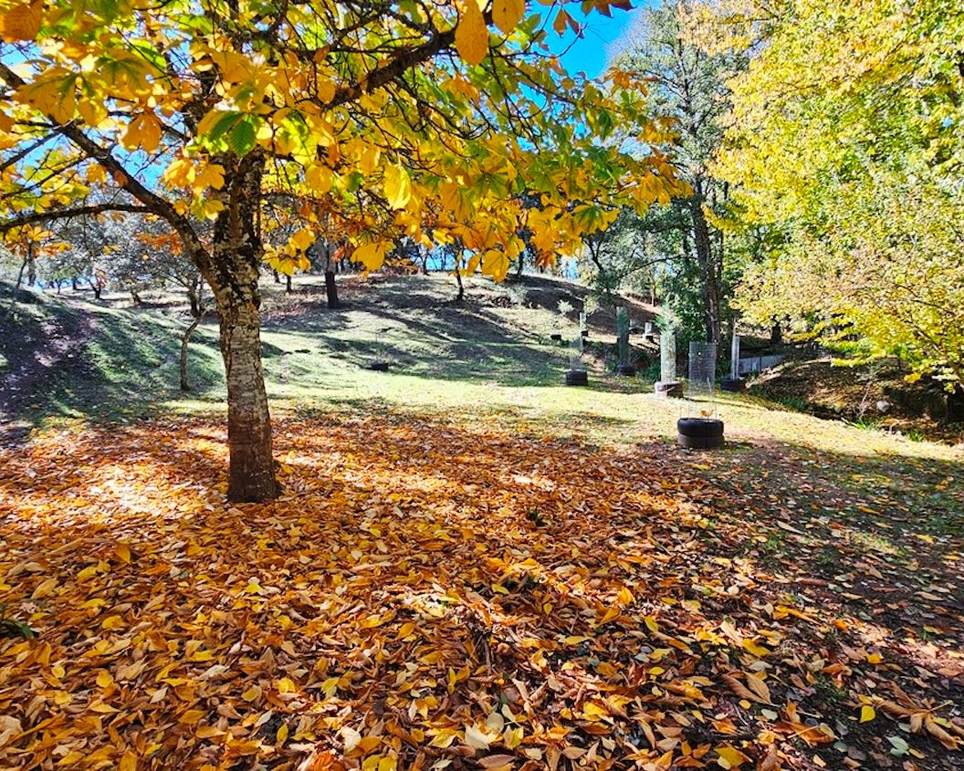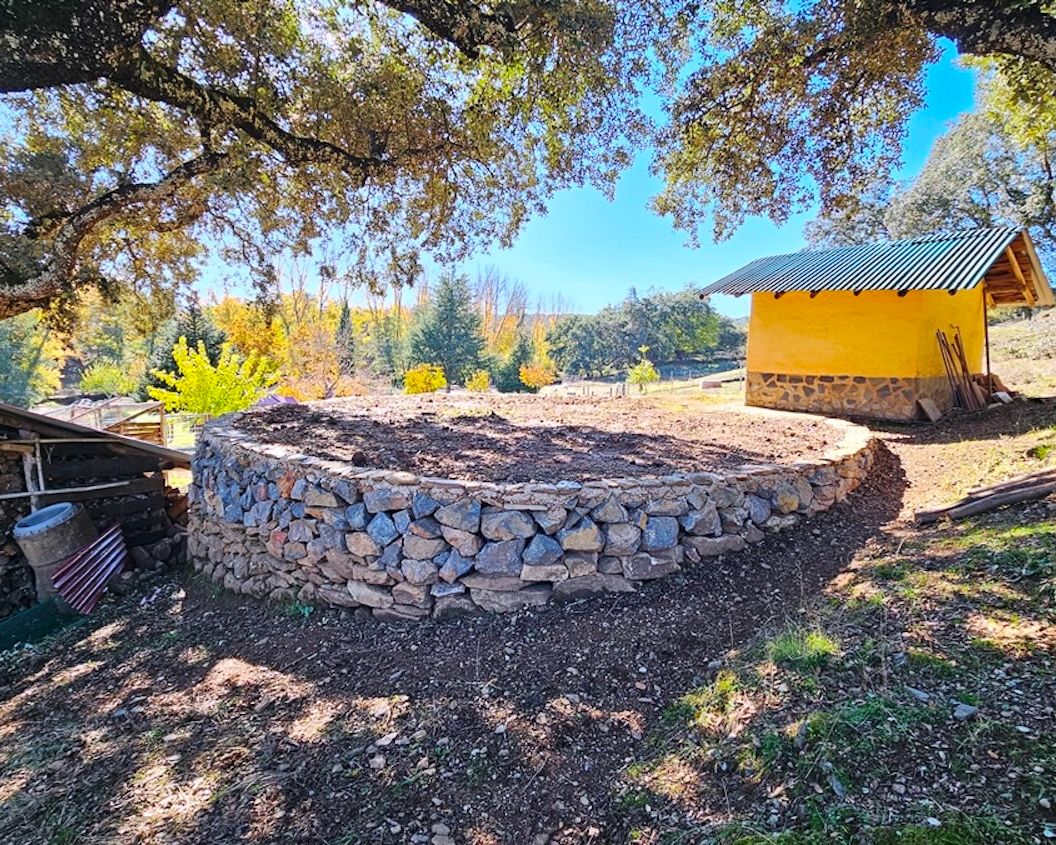 Set on approximately 17,000 m² of land, the property has been thoughtfully developed to encourage self-sufficiency and integration with its surroundings. A year-round stream flows in front of the house, crossed by a small bridge leading to the other side of the finca, adding both charm and practical access.