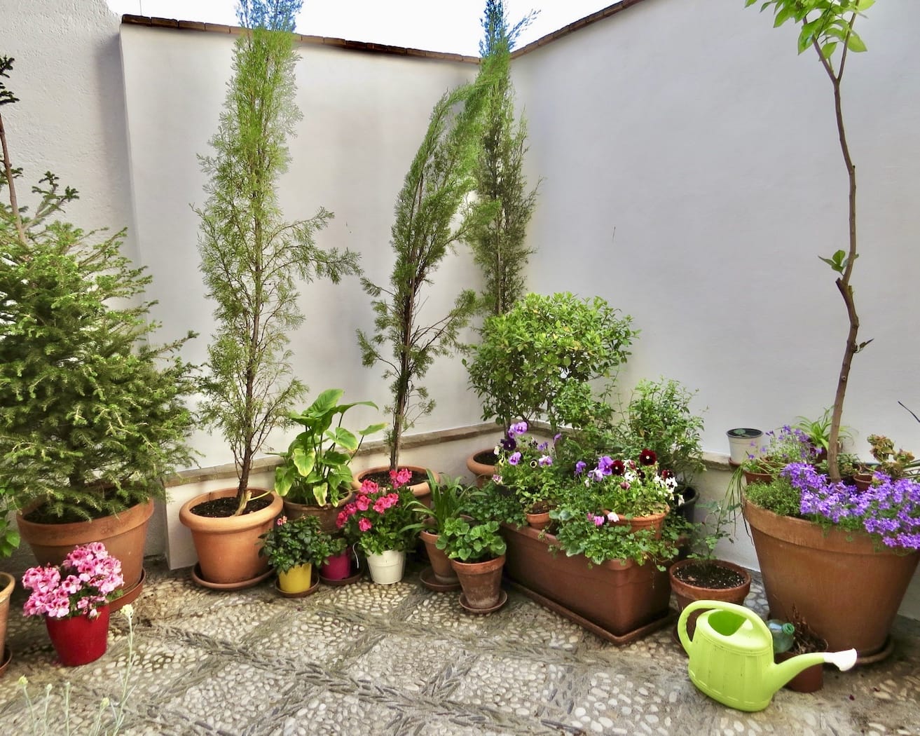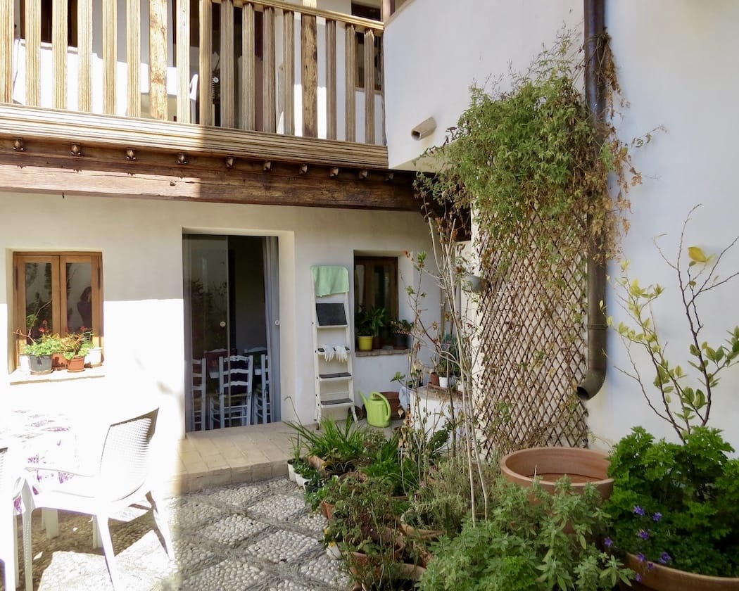 The interior of the house is organised around a charming private patio, a true Andalusian heart to the home. This sunlit courtyard, planted with pots and climbers, provides a peaceful, secluded outdoor space for dining, reading or simply enjoying the quiet of the Albayzín.