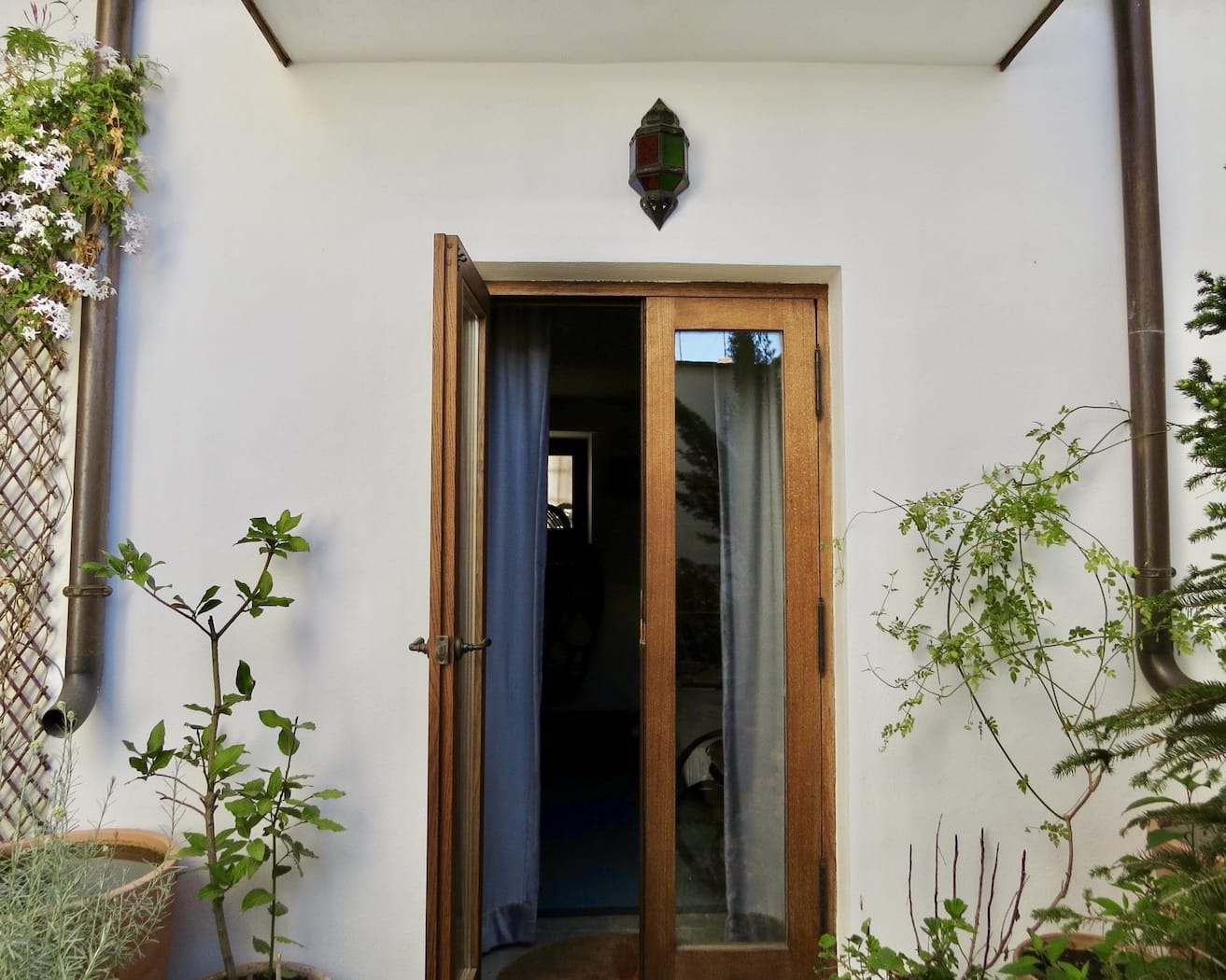 From the street, the whitewashed façade with its traditional tiled eaves and wrought-iron window grills revel the property’s age. Like many of the flower-filled balconies and windows in the Albayzin the exterior conceals the long tradition of intimate, inward-looking houses that reveal their true beauty once you step inside. The house overlooks neighbouring gardens, as well as the rooftops and churches of the Albayzin.