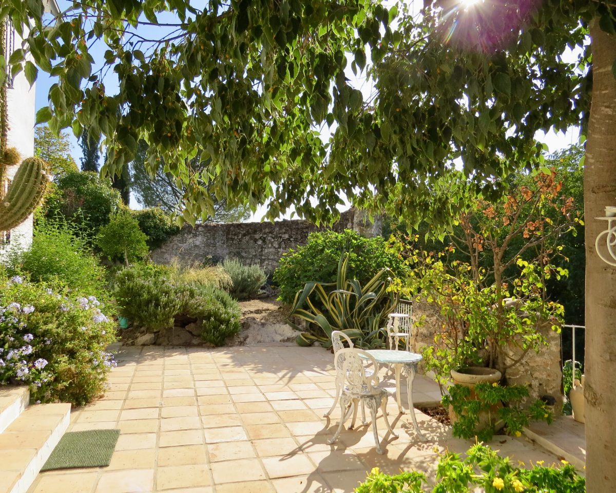 The landscaped garden includes a variety of trees and flowering plants, creating a tranquil and private atmosphere. A towering kaki welcomes you to the property, while behind the house a terrace overlooks a chestnut grove beside the river, offering a perfect spot for outdoor dining and relaxation.