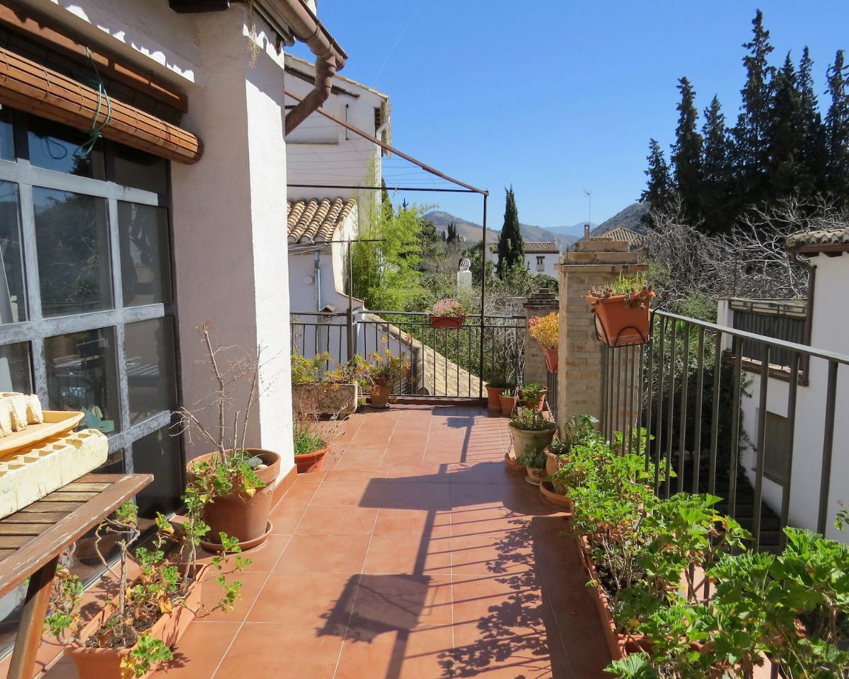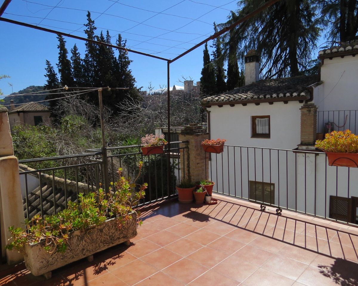 On the first floor is a roof terrace which has access from one of the apartments, and on the second floor a large terrace space in the shape of a U with Alhambra views, as well as another roof terrace one level up, also with views of the Alhambra.