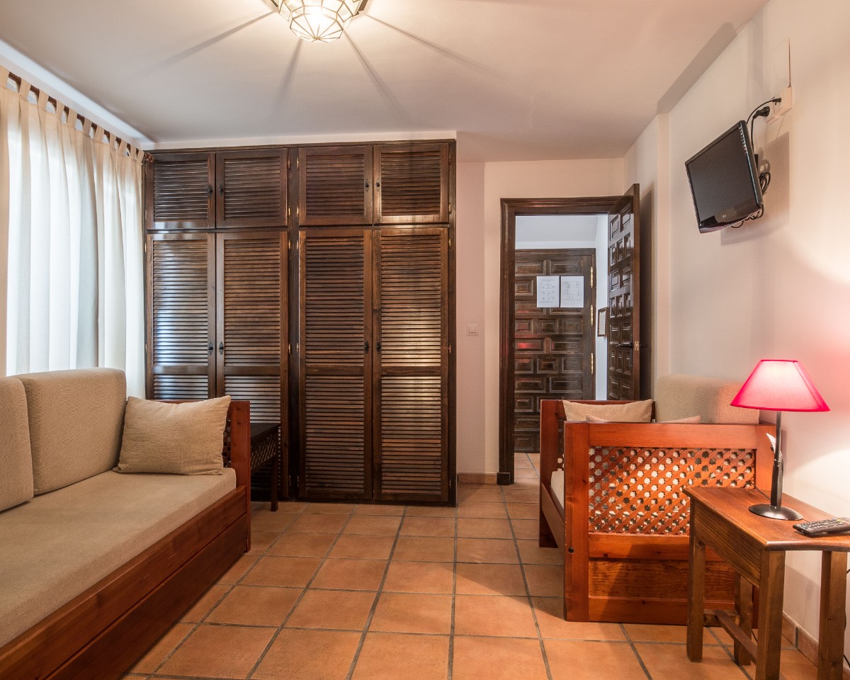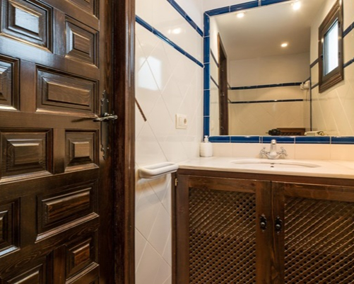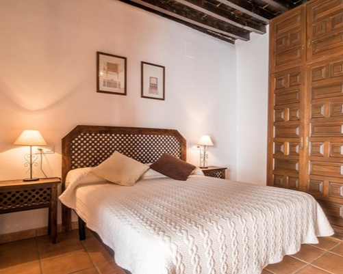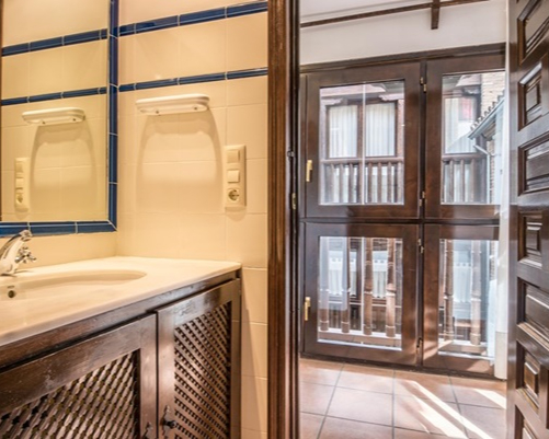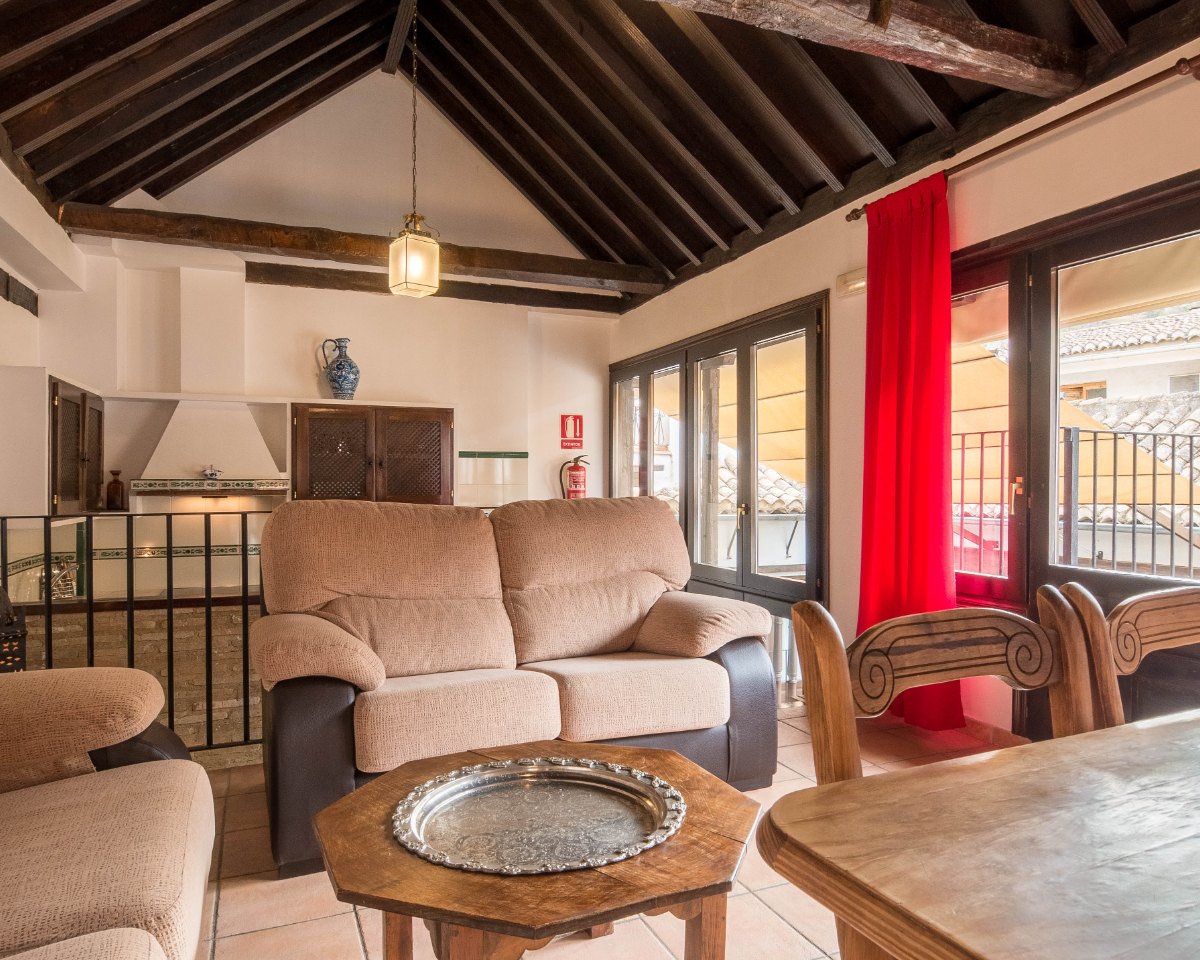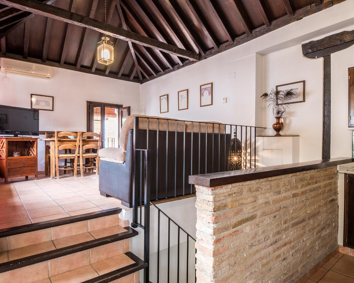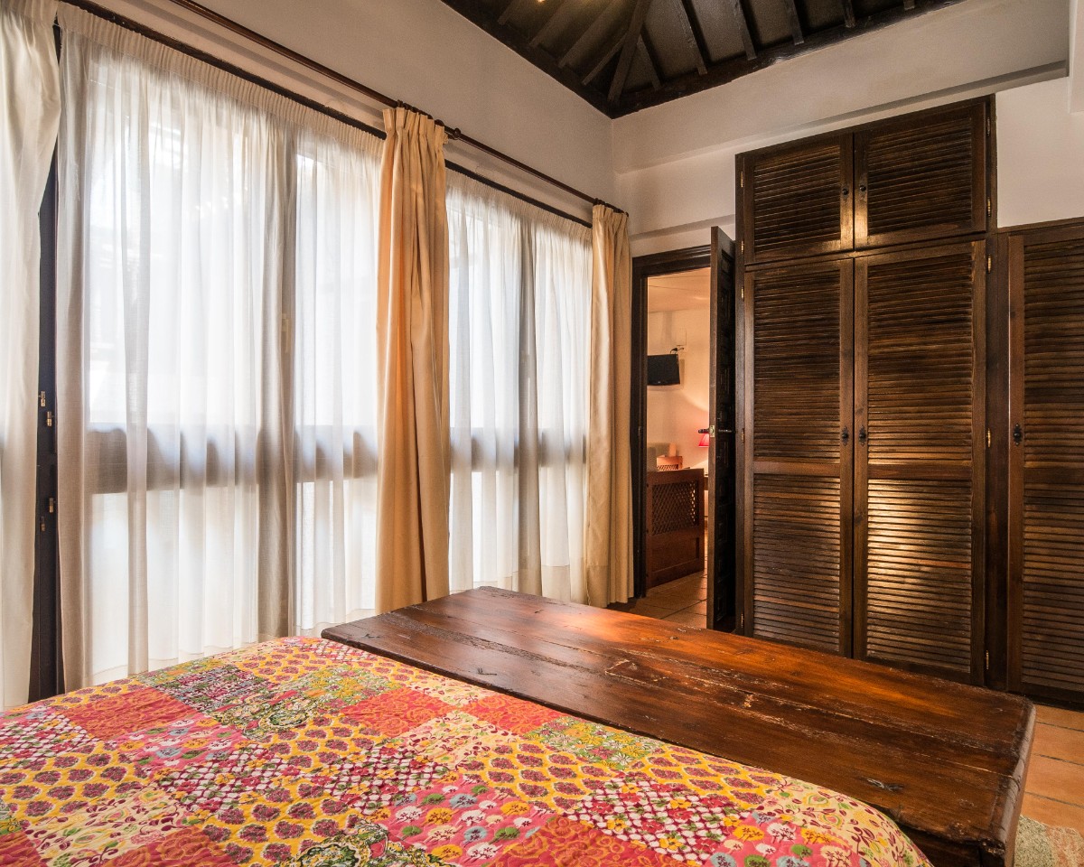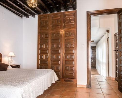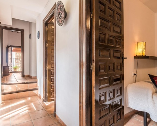 Throughout the building, original architectural elements have been preserved and integrated into the renovation. These include traditional wooden beam ceilings and other historic details that reflect the Moorish origins of the house.
