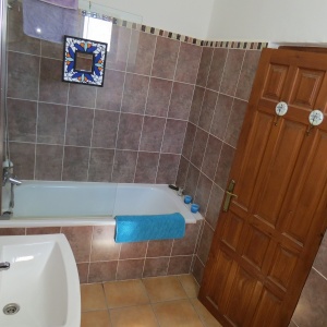The front French doors give on to the same terrace as the master bedroom, which has a wooden pergola with trailing plants. The rear French doors lead to a fabulous terrace that runs the whole length of the house with plentiful space for sun-loungers, an outdoor dining area, there is a garden area planted with roses and bulbs that has a traditional style water-feature and the whole terrace has magnificent views of Mulhacén and the Sierra Nevada mountains. On one corner of the house is a small room housing the solar batteries and generator. To the side of the house is a fully fenced and gated dog enclosure with a slate and concrete base and kennel.
