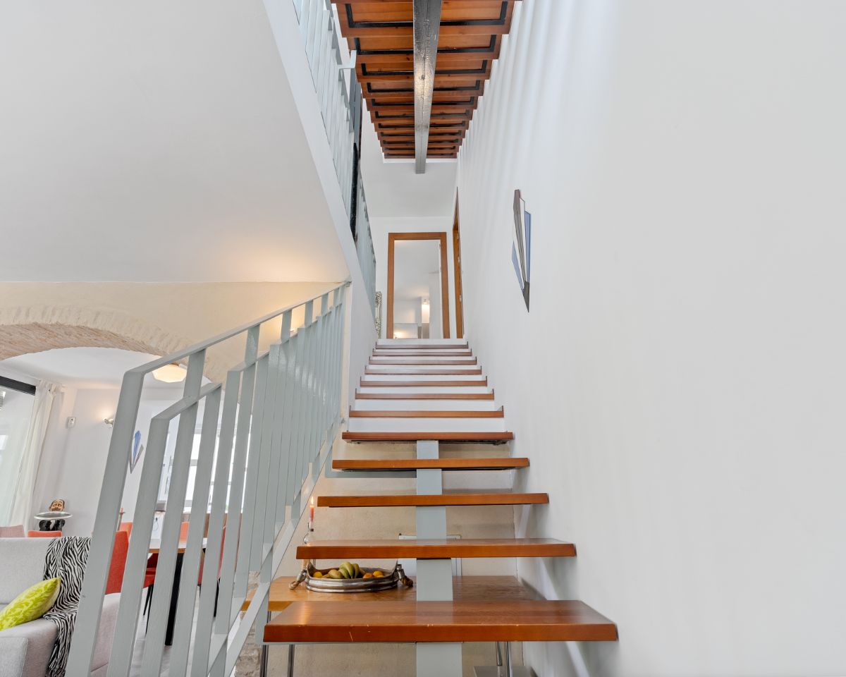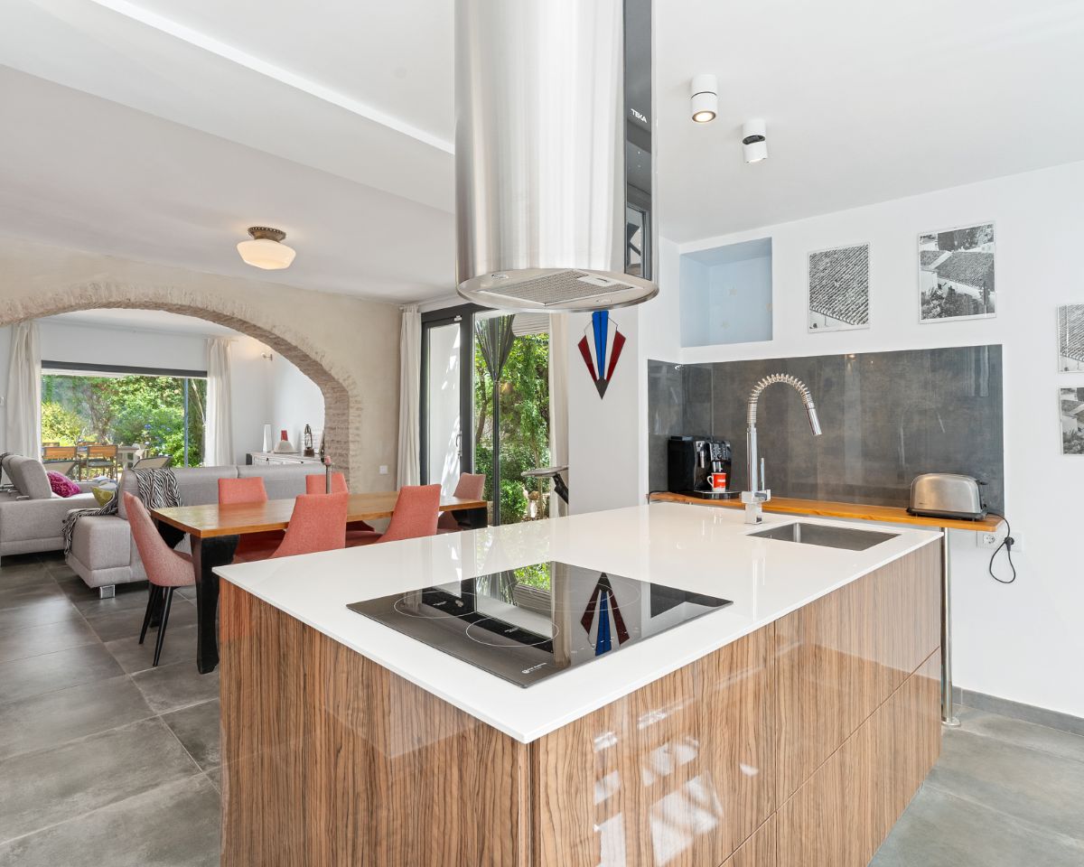 Inside, the property blends contemporary design with subtle references to traditional architecture. A preserved original arch and exposed wooden beams add character, while high-quality modern finishes ensure comfort throughout the home.